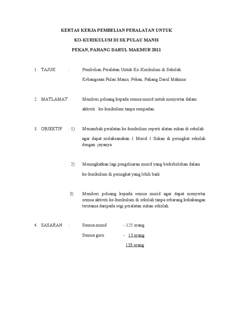 Kertas Kerja Pembelian Pakaian Tarian Dan Pengubahsuaian Bilik Muzik Murid Pdf